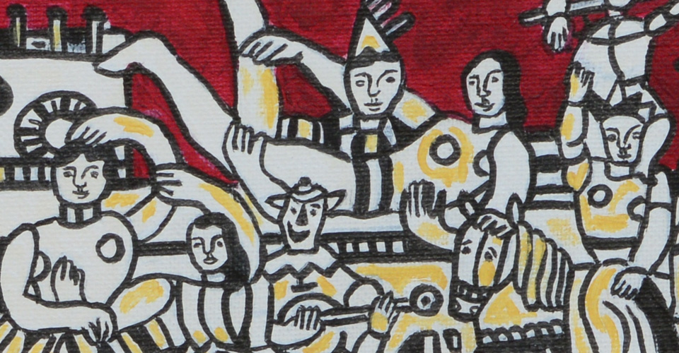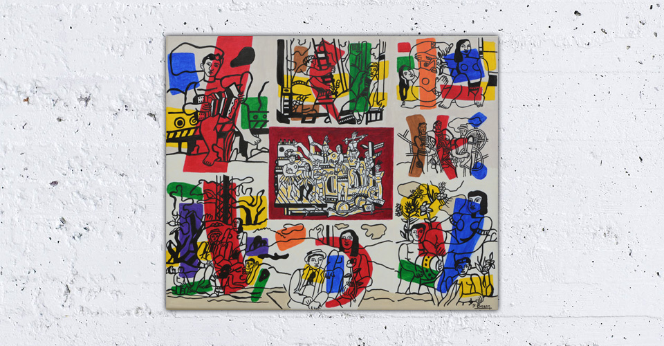 Acrylique sur toile 55x46cm 2008/2009 Musée National Fernand Léger, Biot en savoir + Expo Fernand Léger(1881-1954) Au début des années 50,Fernand Léger ne cesse de peindre la vie, la dépense (les loisirs), l'action dans la ville, toute une période qui se reconstruit.